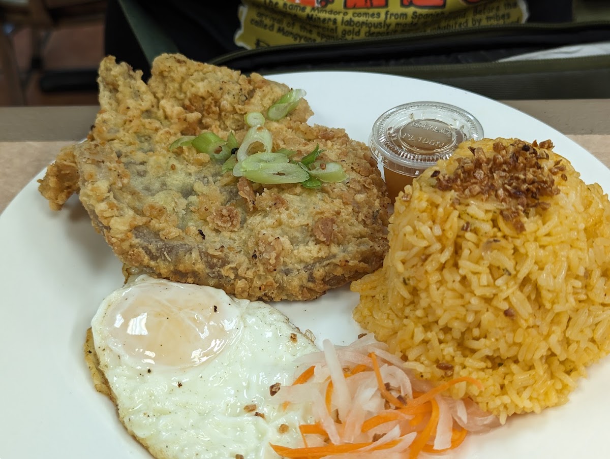 One of the highlights on the menu is the Pork Chop Silog, a satisfying and hearty meal that pairs juicy, tender pork chops with garlic fried rice and a fried egg. It's a classic Filipino breakfast dish that's sure to leave you full and happy. For those who love a spicy kick, the Sisigsilog Sisig Fried Rice and Egg is a must-try. The sizzling sisig, served on a hot plate with flavorful fried rice, is both crunchy and savory-a true Filipino delight!